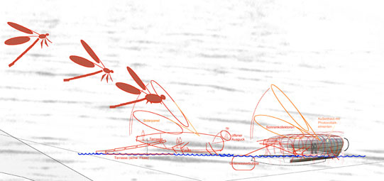 Ufer nieder, um sich in der Sonne eine Ruhepause zu gönnen. So könnte 'die Libelle' als Symbol für eine neue innovative Wohnform