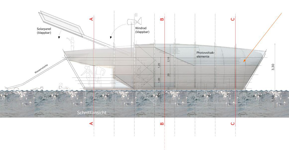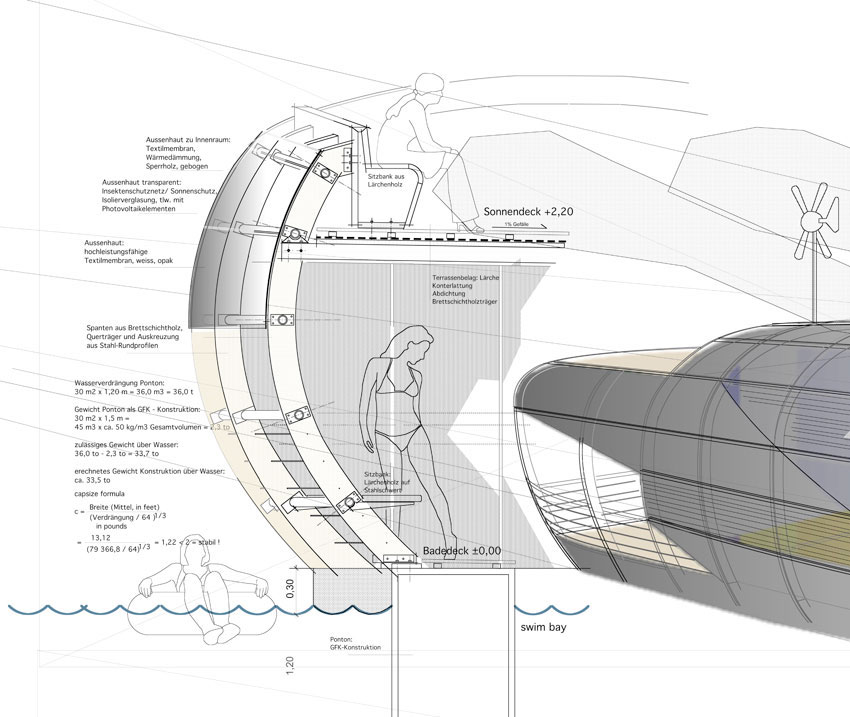 Spektrum an Sport-, Erholungs-, Arbeits- und Wohnmöglichkeiten. Gesucht wurden Entwürfe für schwimmende Wohnobjekte